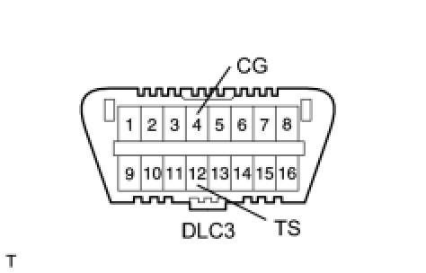(1) Before beginning testing, disable the VSC. To disable the VSC, turn the ignition switch OFF and connect SST to terminals 12 (TS) and 4 (CG) of the DLC3.