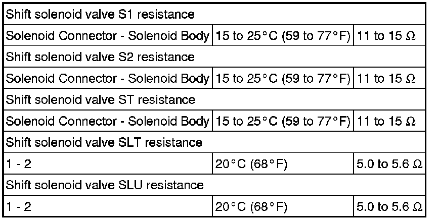 SERVICE SPECIFICATIONS: U341E AUTOMATIC TRANSAXLE: SERVICE DATA