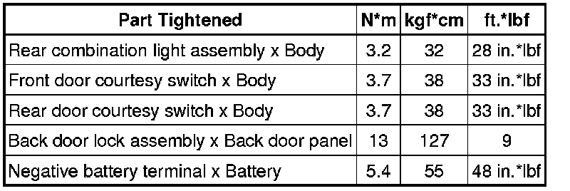 SERVICE SPECIFICATIONS: LIGHTING: TORQUE SPECIFICATIONS