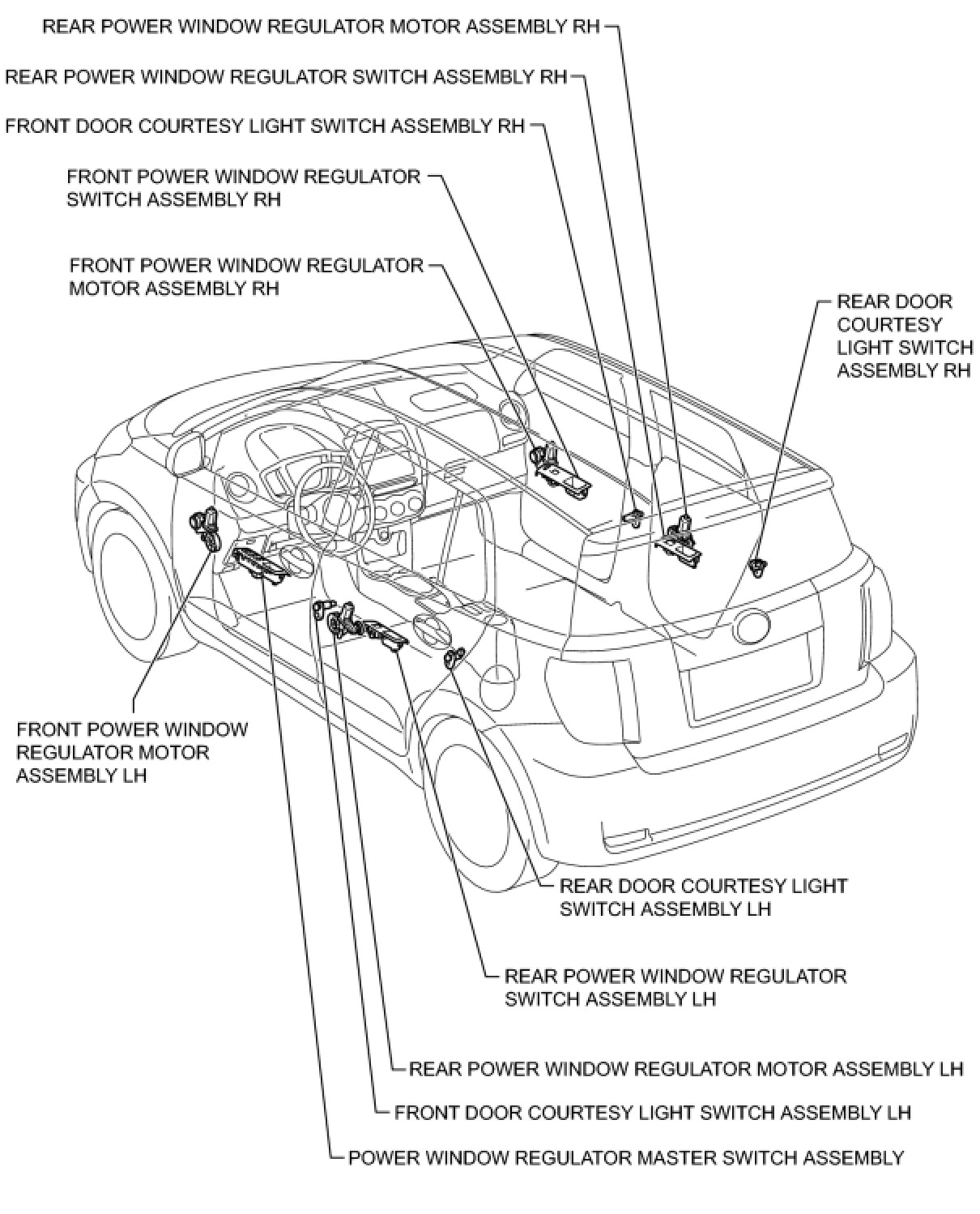 WINDSHIELD / WINDOW GLASS: POWER WINDOW CONTROL SYSTEM: PARTS LOCATION