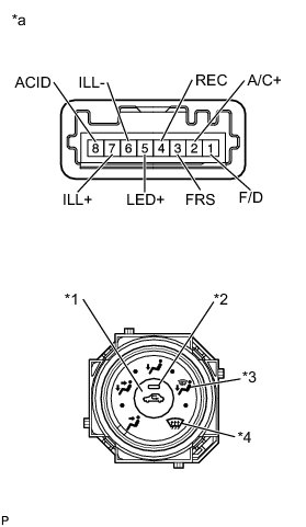 (1) Connect the positive (+) lead from the battery to terminal 7 (ILL+) and the negative (-) lead to terminal 1 (ILL-), then check that the bulb illuminates.