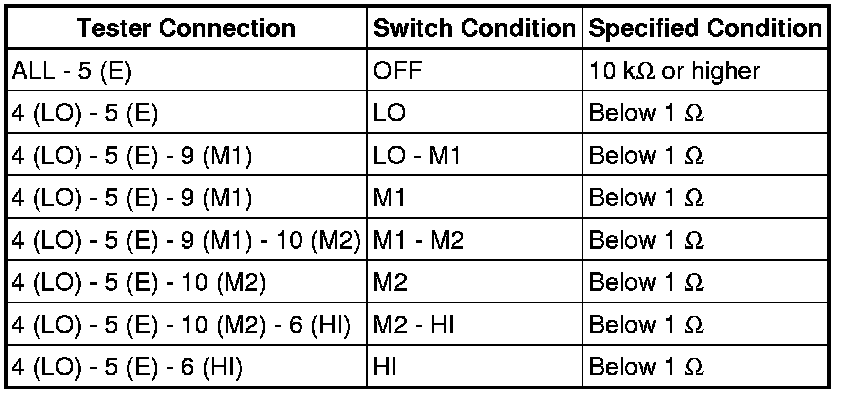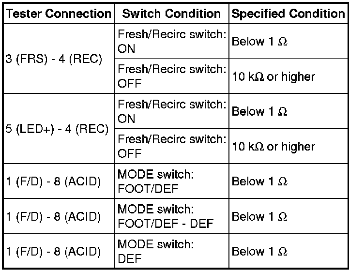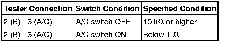 (2) Measure the resistance according to the value(s) in the table below (for Cold Area Specification Vehicles).