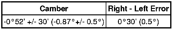 * The tolerance for the difference between the left and right wheels is 30' (0.5°) or less for both cambers.
