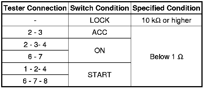 8. INSPECT IGNITION SWITCH ASSEMBLY