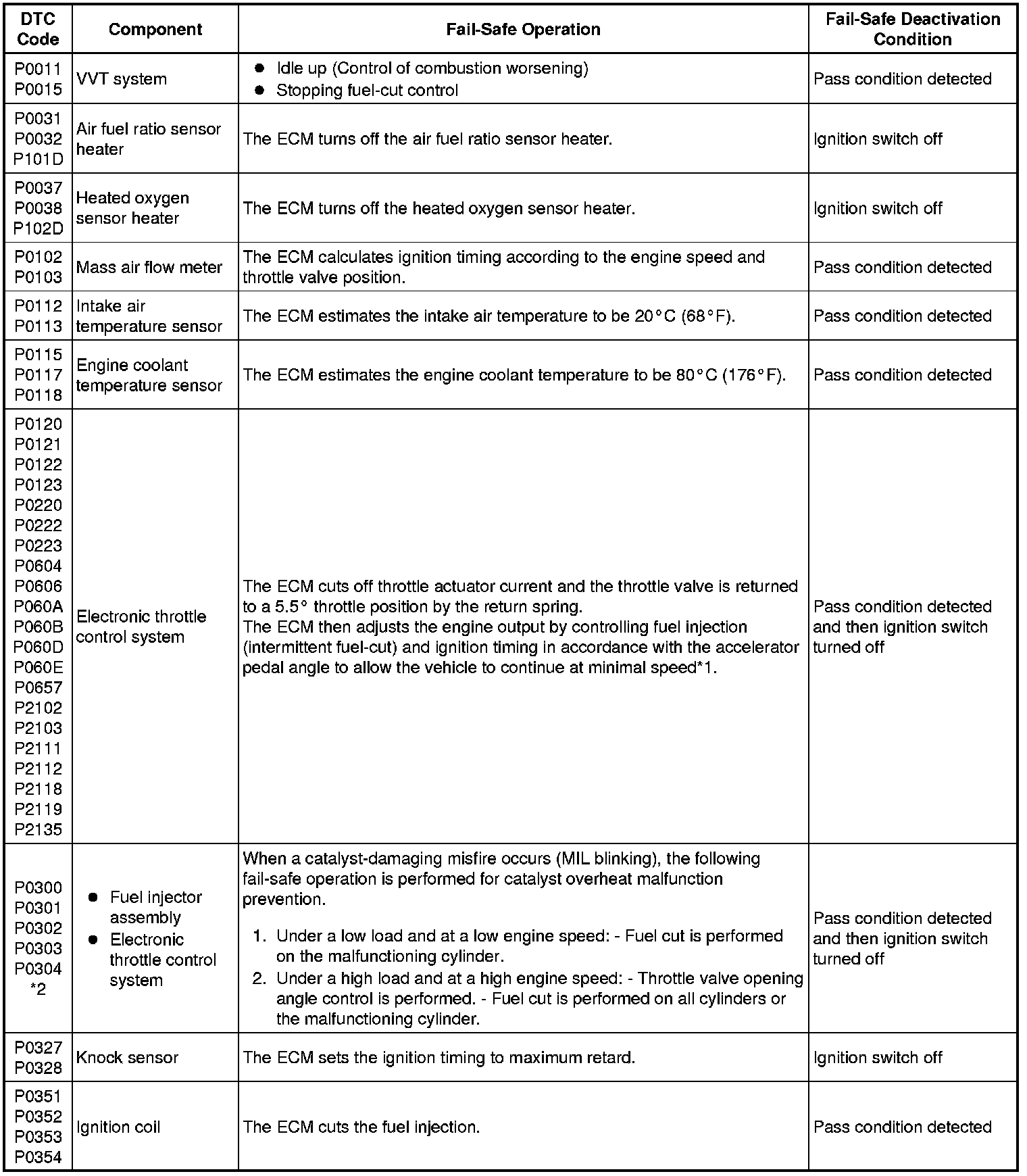 * *2: Misfire-related fail-safe operations occur when catalyst overheat malfunctions occur.