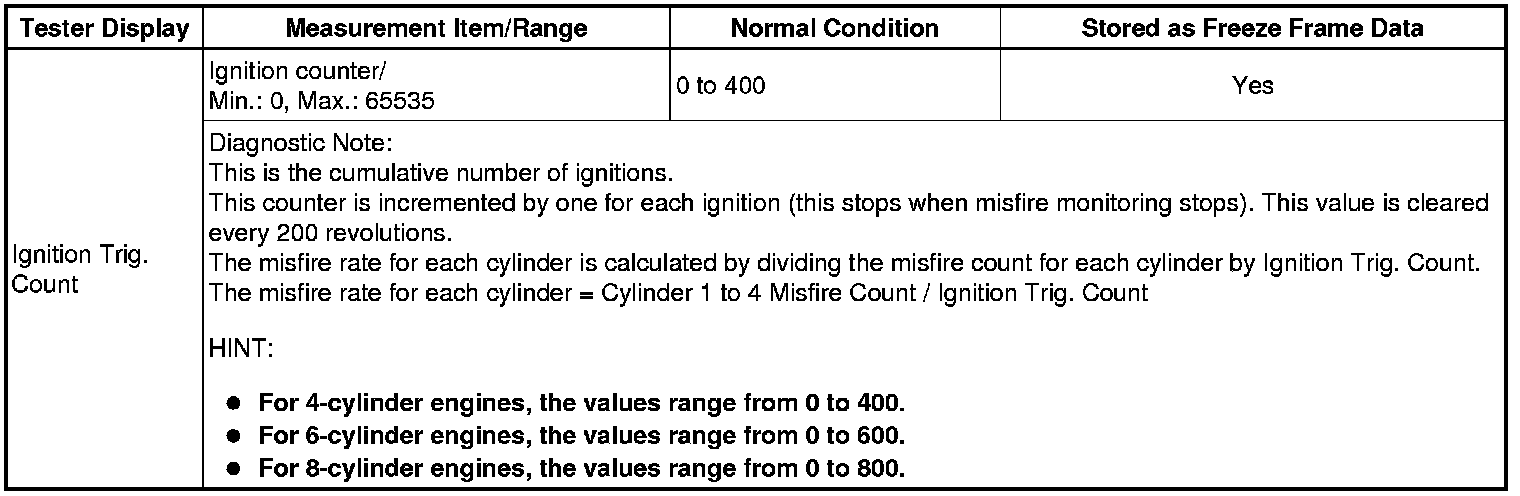 Cylinder #1 Misfire Count to Cylinder #4 Misfire Count