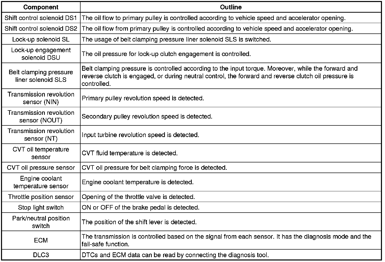 K41B CVT: CONTINUOUSLY VARIABLE TRANSAXLE SYSTEM: SYSTEM DESCRIPTION