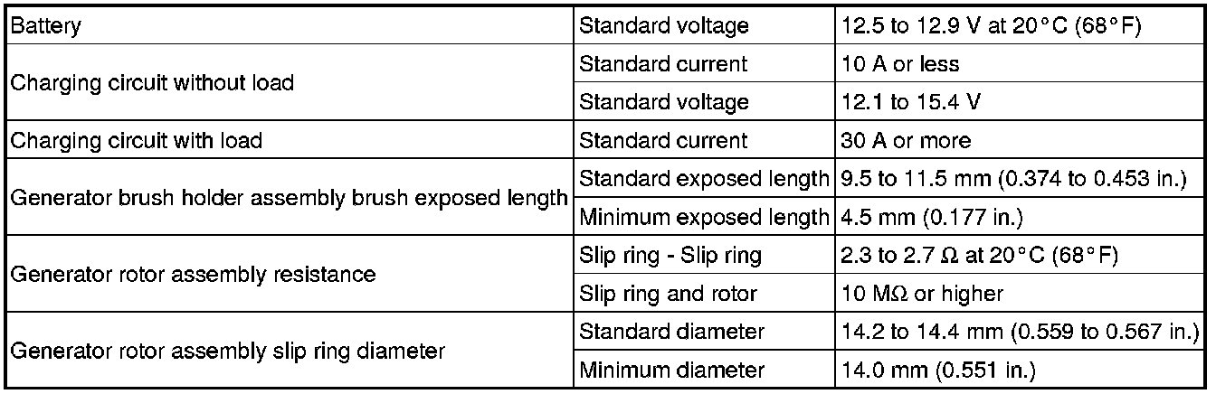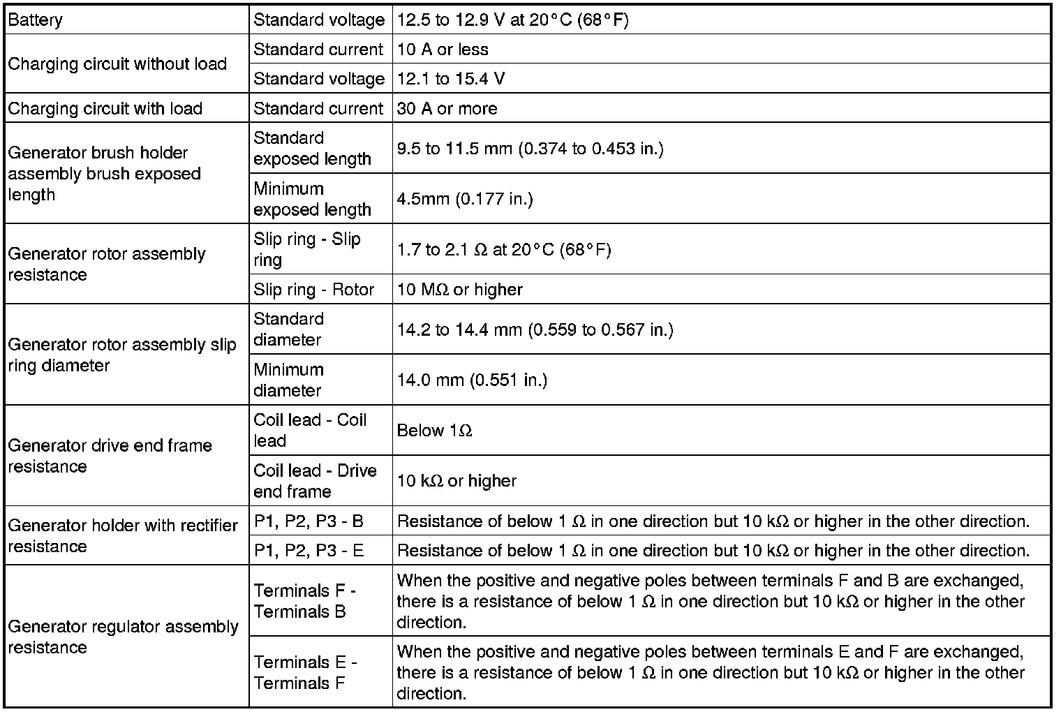 SPECIFICATIONS: 1NR-FE BATTERY / CHARGING: SERVICE DATA