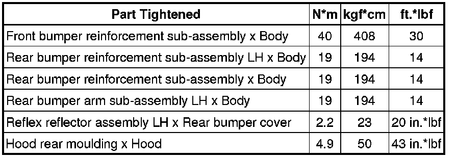 SPECIFICATIONS: EXTERIOR PANELS / TRIM: TORQUE SPECIFICATIONS
