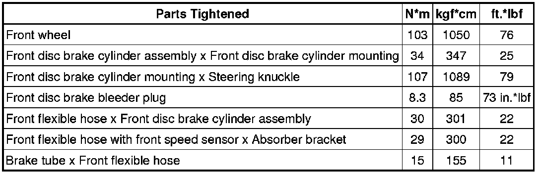 SPECIFICATIONS: BRAKE (FRONT): TORQUE SPECIFICATIONS