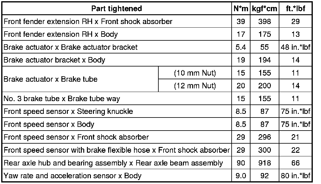 SPECIFICATIONS: BRAKE CONTROL / DYNAMIC CONTROL SYSTEMS: TORQUE SPECIFICATIONS