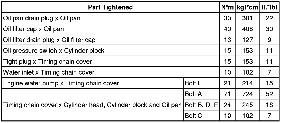 SPECIFICATIONS: 1NR-FE LUBRICATION: TORQUE SPECIFICATIONS