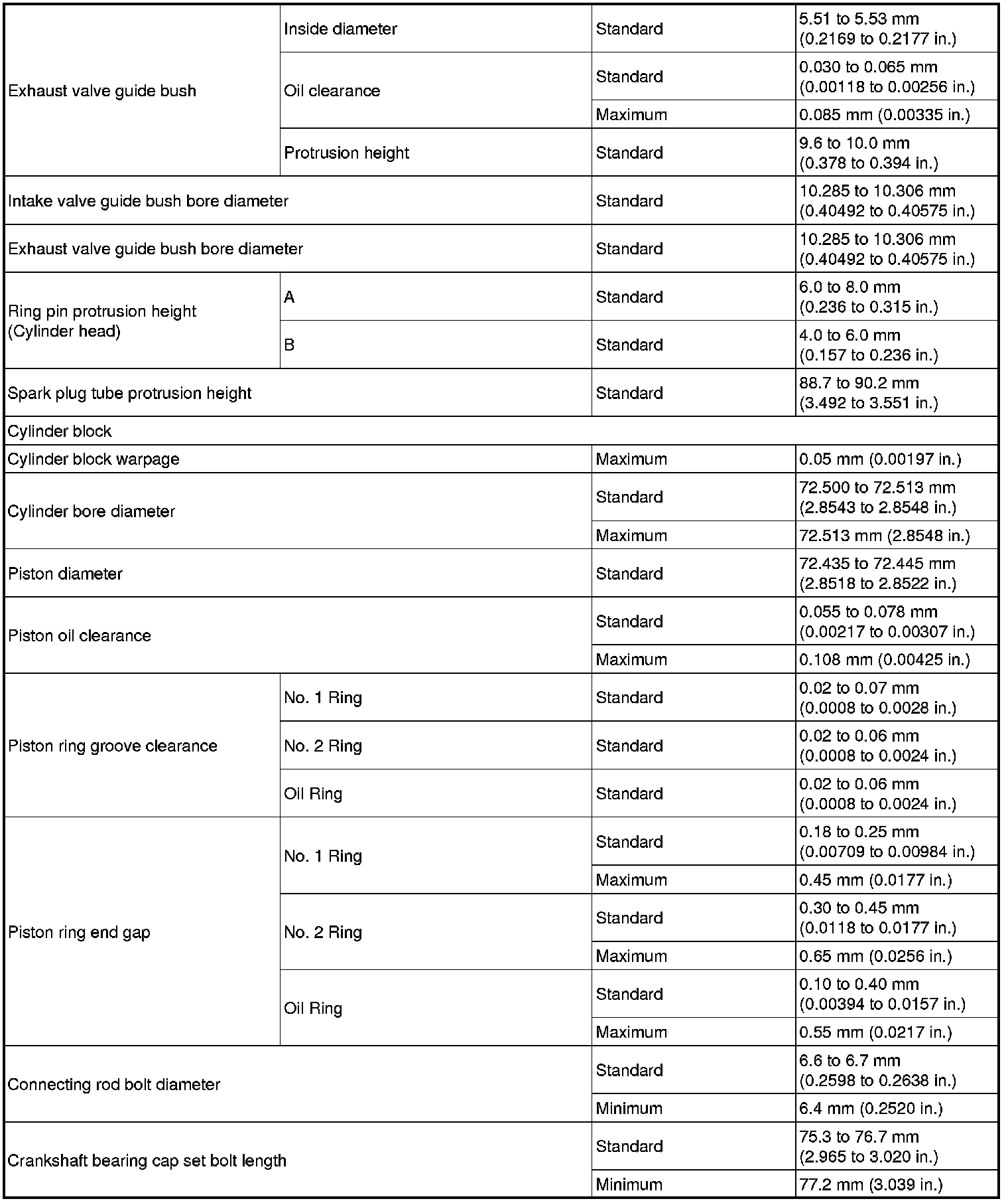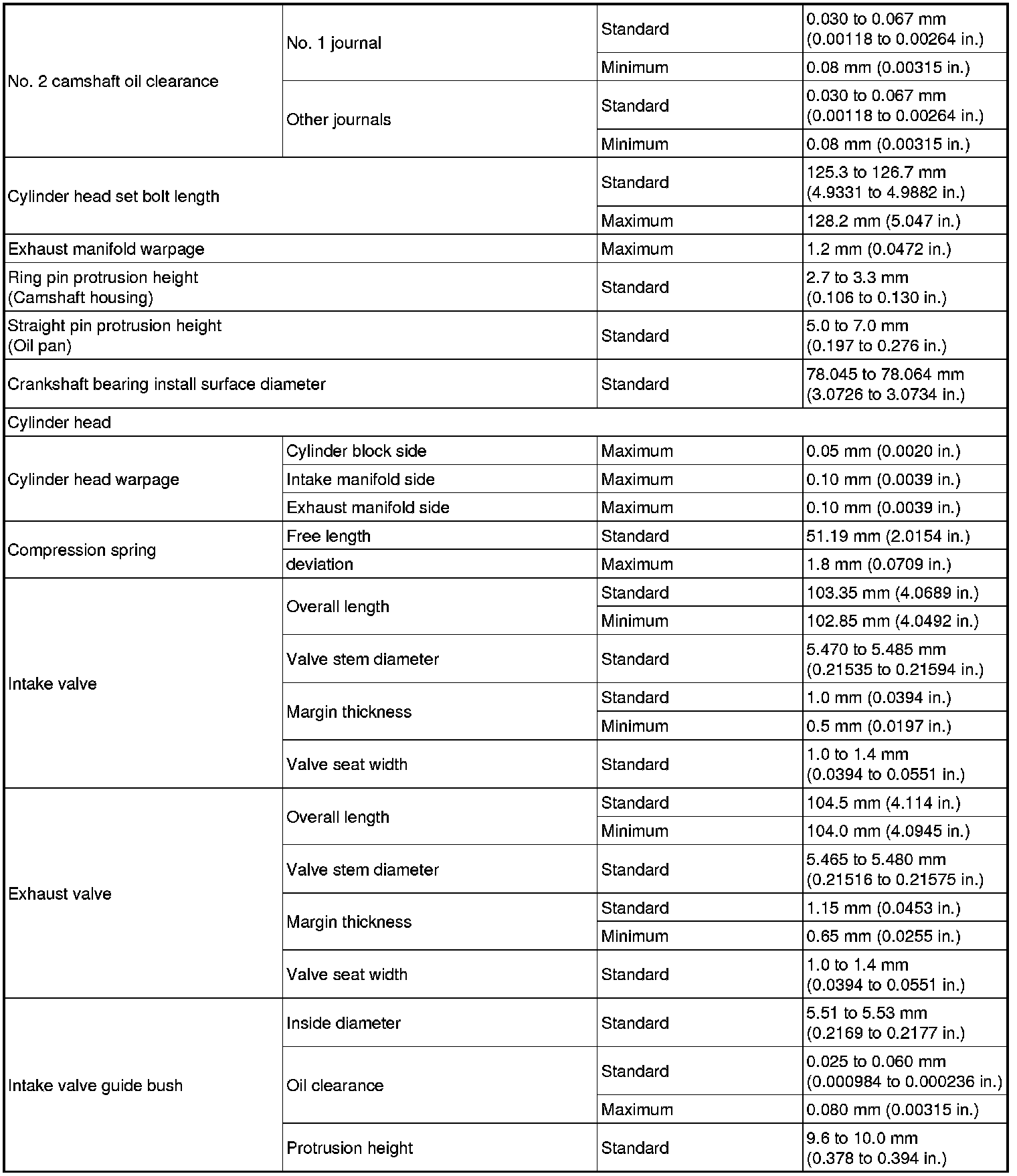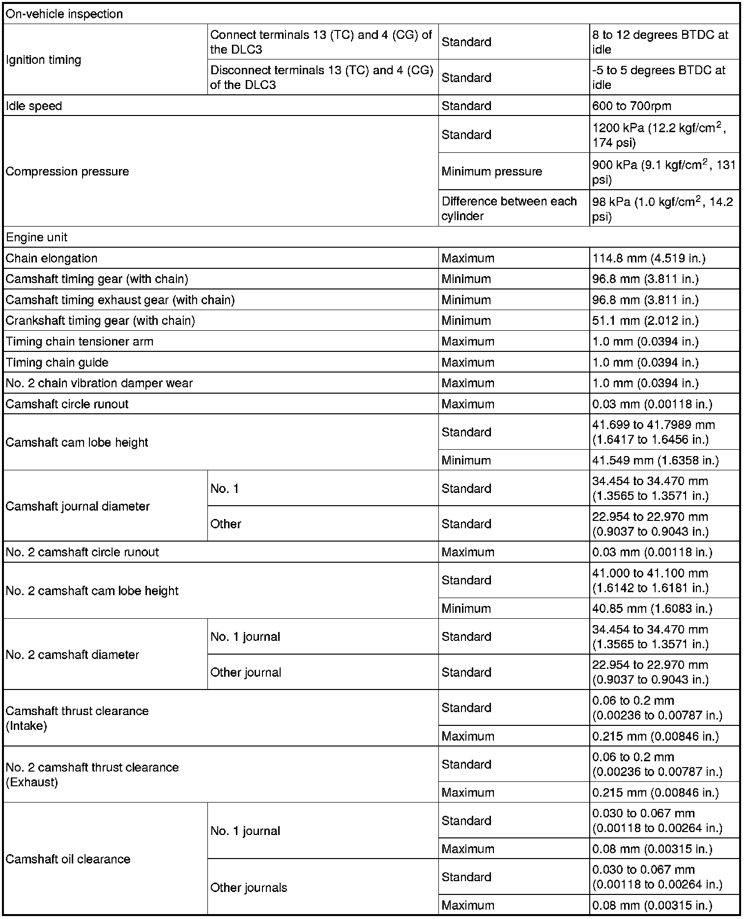 SPECIFICATIONS: 1NR-FE ENGINE MECHANICAL: SERVICE DATA