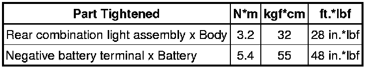SPECIFICATIONS: LIGHTING (EXT): TORQUE SPECIFICATIONS