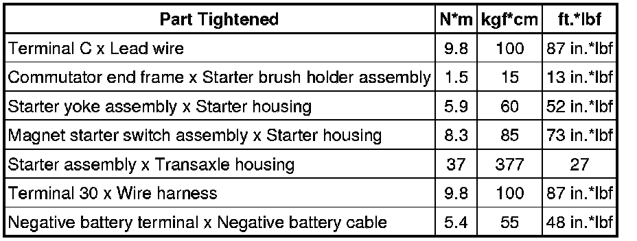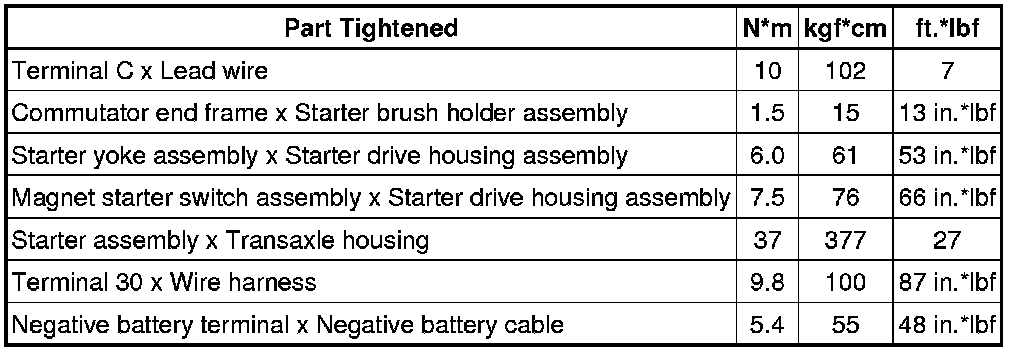 SPECIFICATIONS: 1NR-FE STARTING: TORQUE SPECIFICATIONS