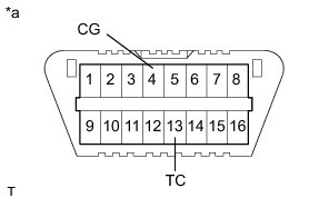 (1) Using SST, connect terminals 13 (TC) and 4 (CG) of the DLC3.
