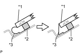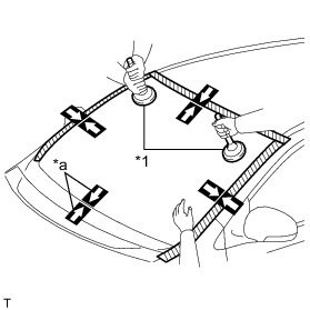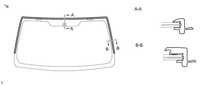 (b) Install a new windshield weatherstrip onto the windshield glass, as shown in the illustration.