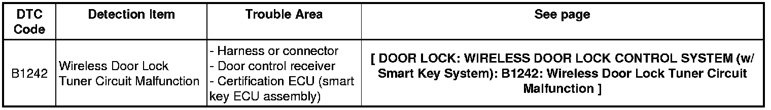 DOOR LOCK: WIRELESS DOOR LOCK CONTROL SYSTEM (W/ Smart Key System): DIAGNOSTIC TROUBLE CODE CHART