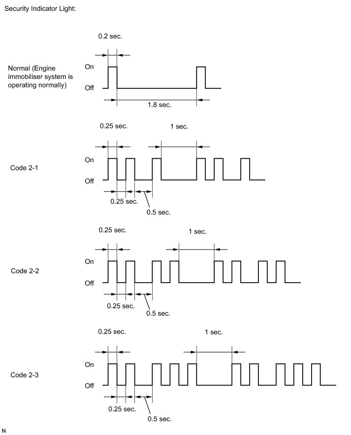 * When the engine immobilizer system is operating normally and the key is pulled out, the security indicator light blinks continuously.