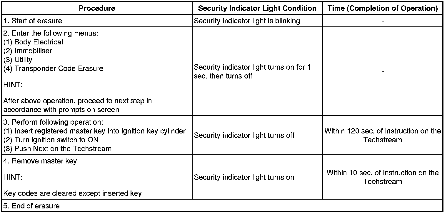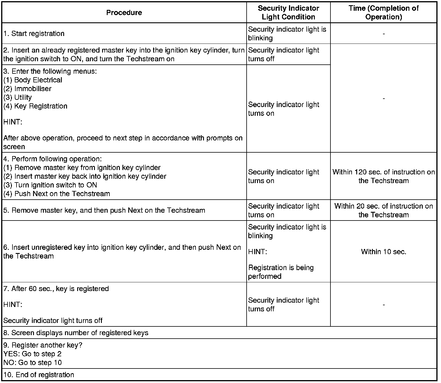 * A brief outline of the procedures for key code registration is shown above. For more detailed information, refer to the screen of the Techstream.