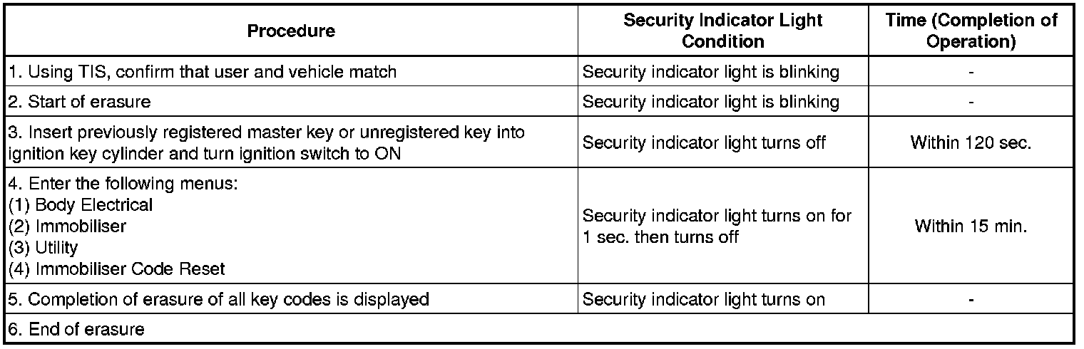 Automatic key code registration mode can be forced to end when at least 1 key code (immobilizer code) for a master key is registered.