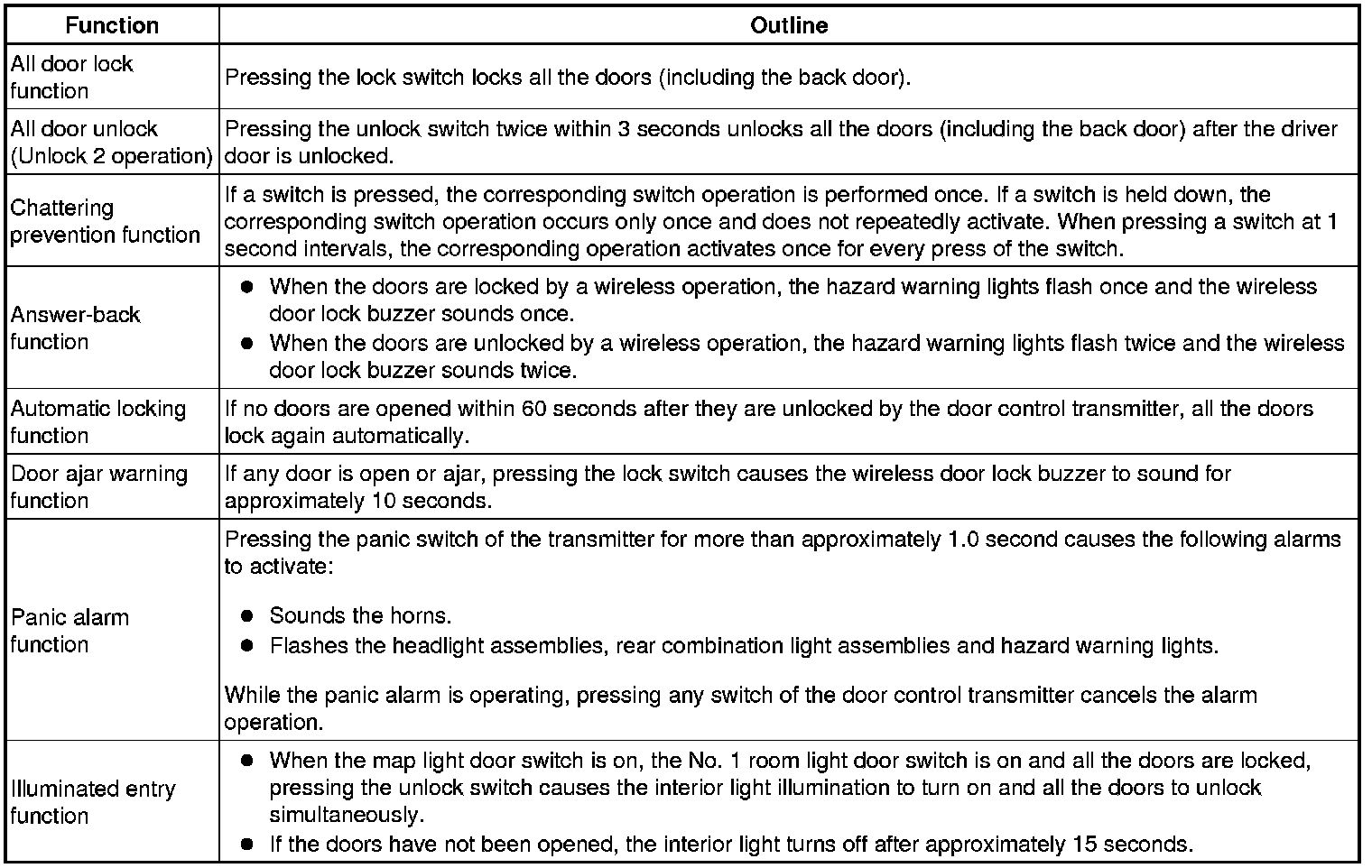 DOOR LOCK: WIRELESS DOOR LOCK CONTROL SYSTEM (W/O Smart Key System): SYSTEM DESCRIPTION