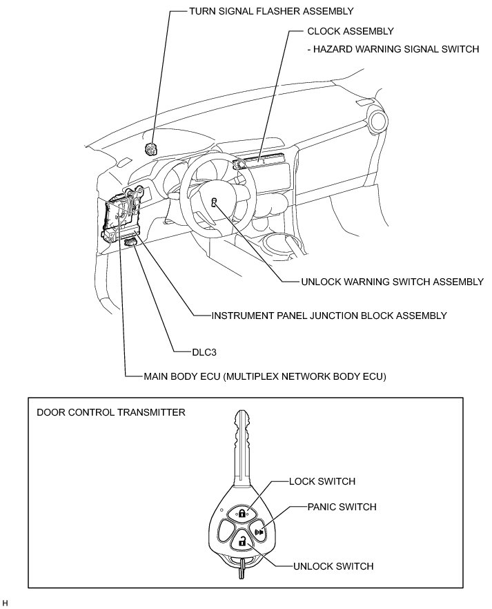 DOOR LOCK: WIRELESS DOOR LOCK CONTROL SYSTEM (W/O Smart Key System): PARTS LOCATION