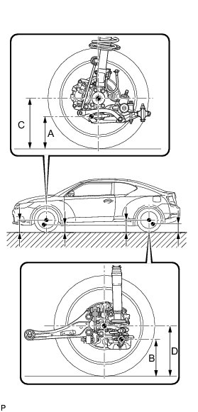 * Before inspecting the wheel alignment, adjust the vehicle height to the specified value.