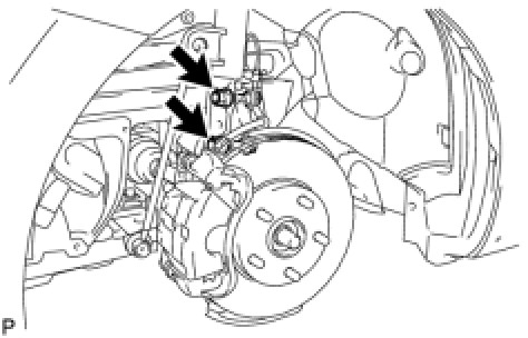 (d) Remove the 2 nuts on the lower side of the front shock absorber.