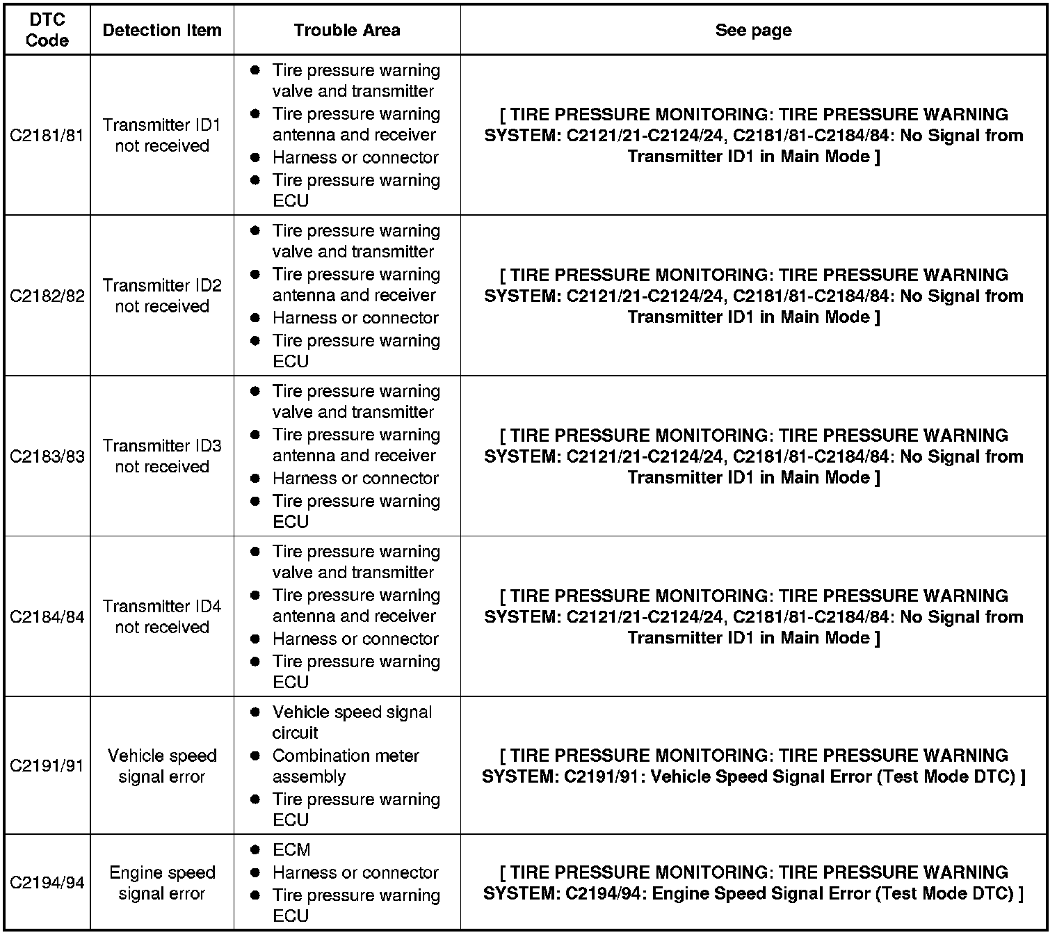* When entering signal check mode, the tire pressure warning ECU stores all the signal check DTCs first. After completing the signal check for each inspection item, the DTCs for systems that are determined to be normal by the tire pressure warning ECU are cleared.