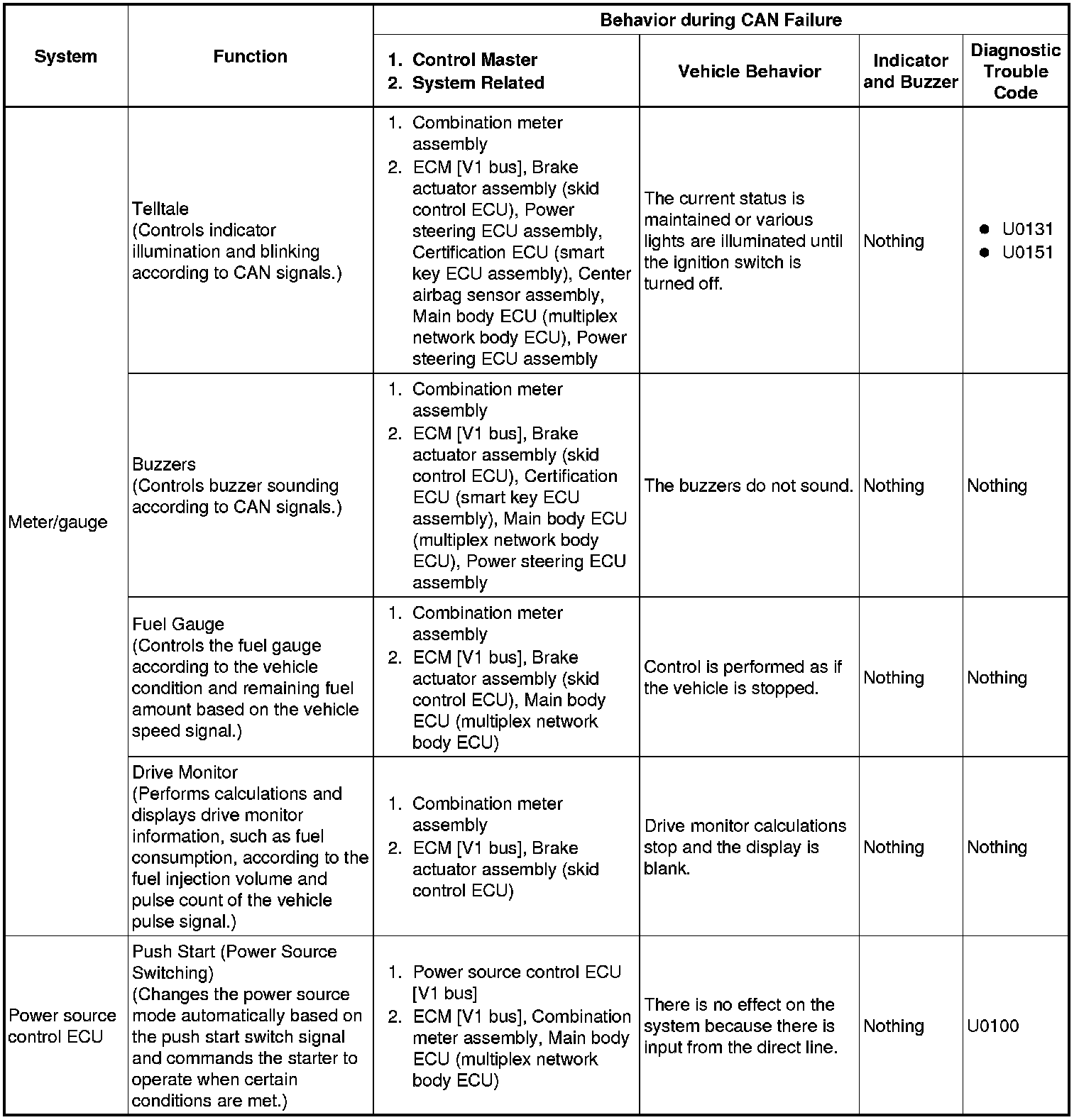 NETWORKING: CAN COMMUNICATION SYSTEM: FAIL-SAFE CHART