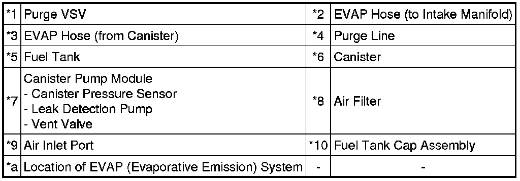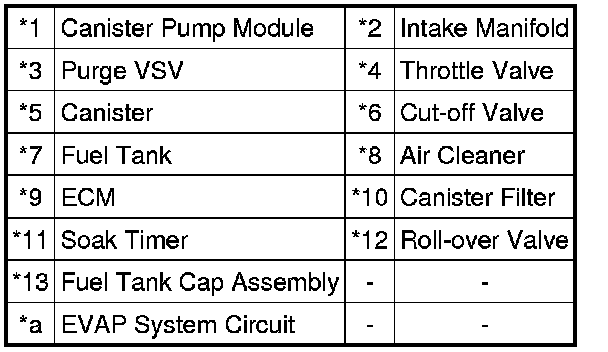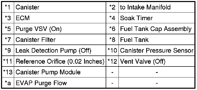 * *2: This result suggests that due to purge line blockage or purge VSV malfunction, the DTC was stored by the purge flow monitor while the engine was running, or that key-off monitor test result were nearly borderline values.