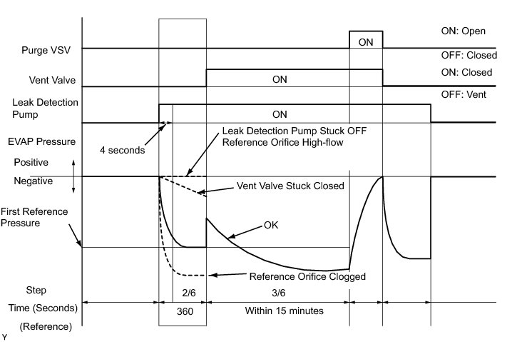 (b) Compare the EVAP pressure in step 3/6 and the second reference pressure (step 5/6).