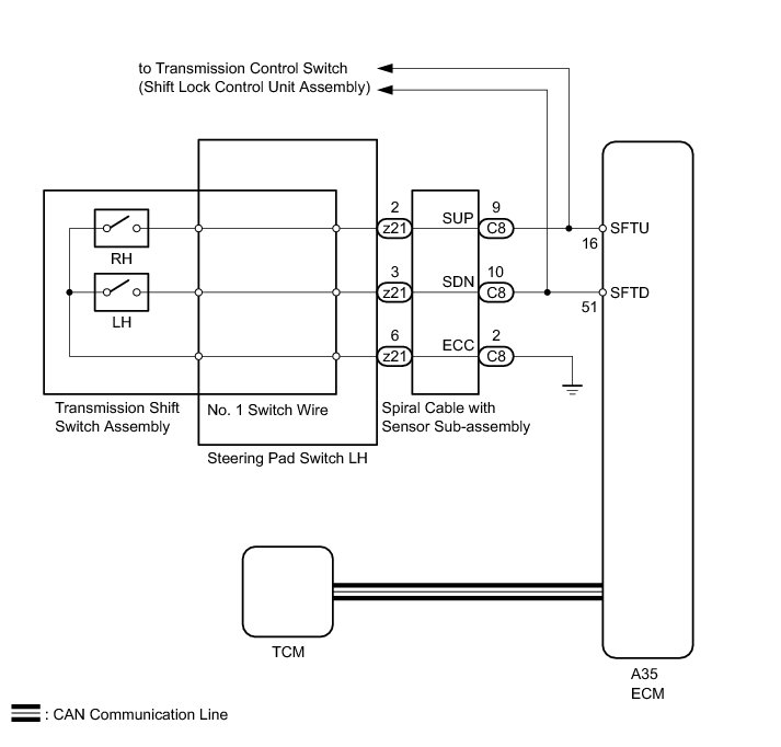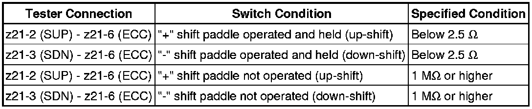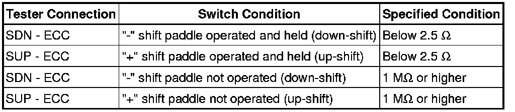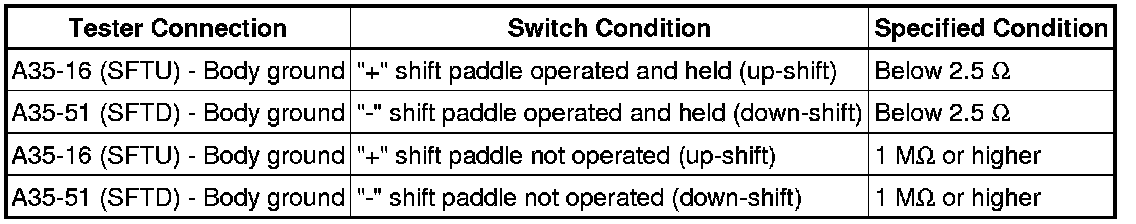 U760E AUTOMATIC TRANSMISSION / TRANSAXLE: AUTOMATIC TRANSAXLE SYSTEM: Shift Paddle Switch Circuit