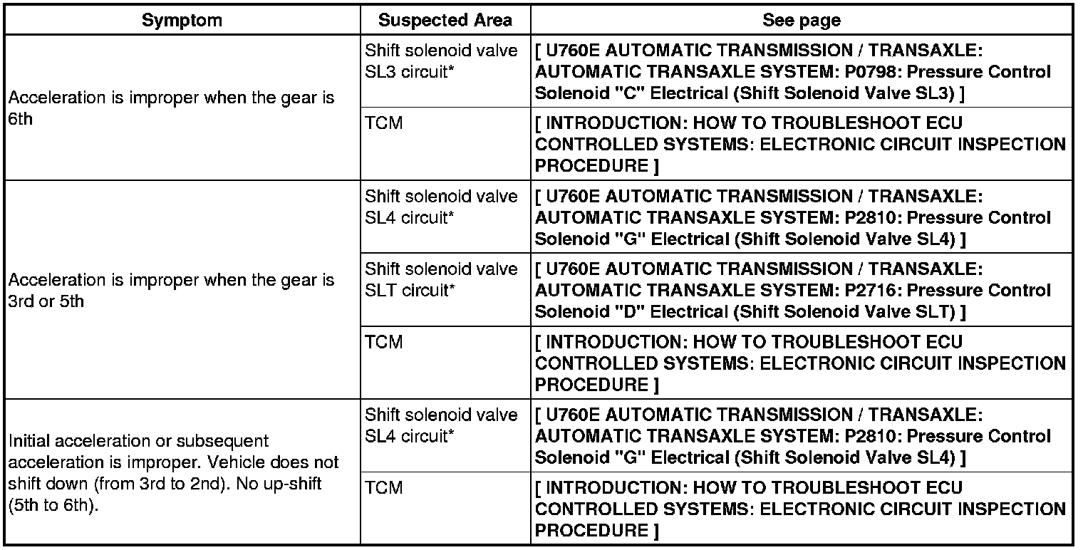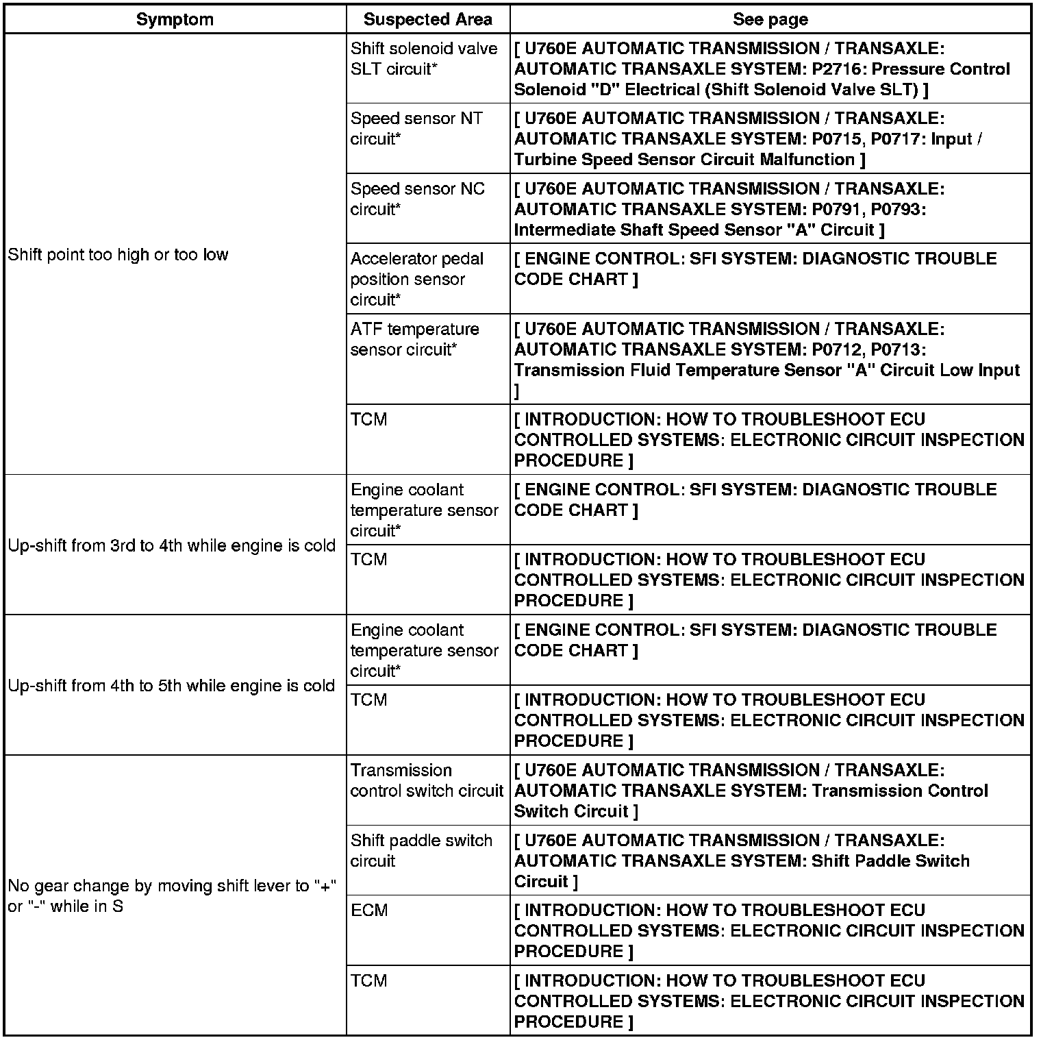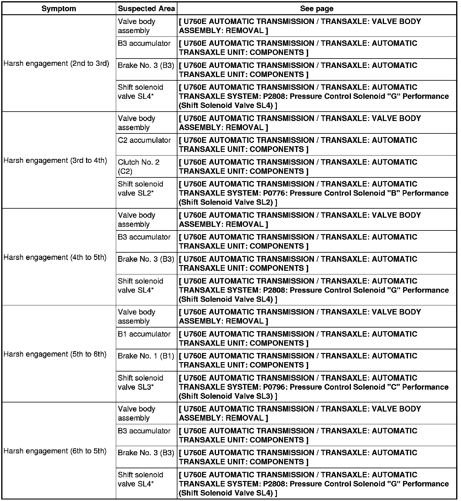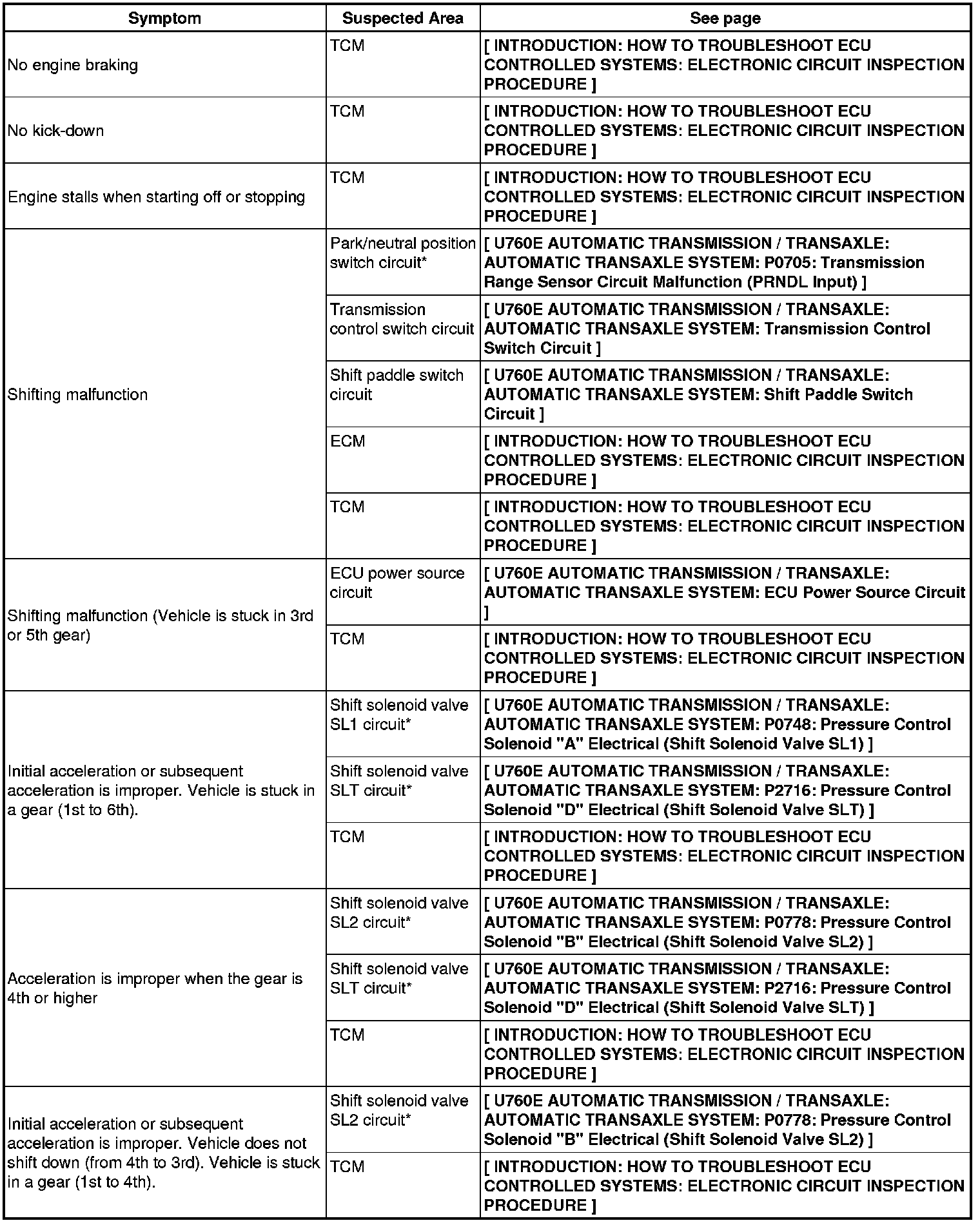 U760E AUTOMATIC TRANSMISSION / TRANSAXLE: AUTOMATIC TRANSAXLE SYSTEM: PROBLEM SYMPTOMS TABLE