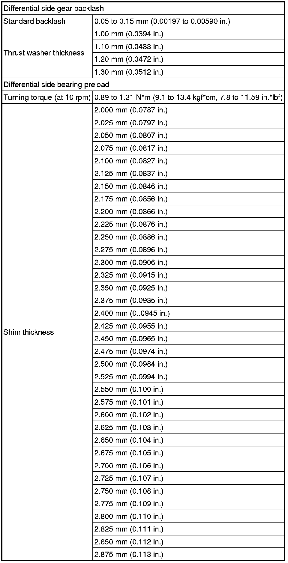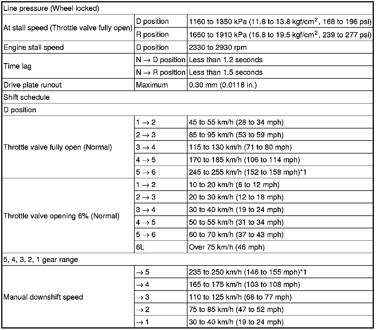 SPECIFICATIONS: U760E AUTOMATIC TRANSMISSION / TRANSAXLE: SERVICE DATA