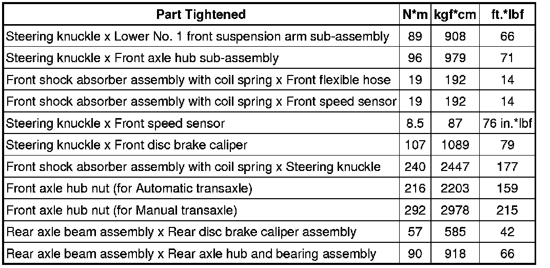 SPECIFICATIONS: AXLE AND DIFFERENTIAL: TORQUE SPECIFICATIONS