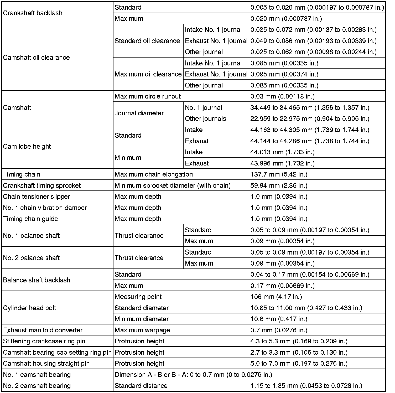 SPECIFICATIONS: 2AR-FE ENGINE MECHANICAL: SERVICE DATA