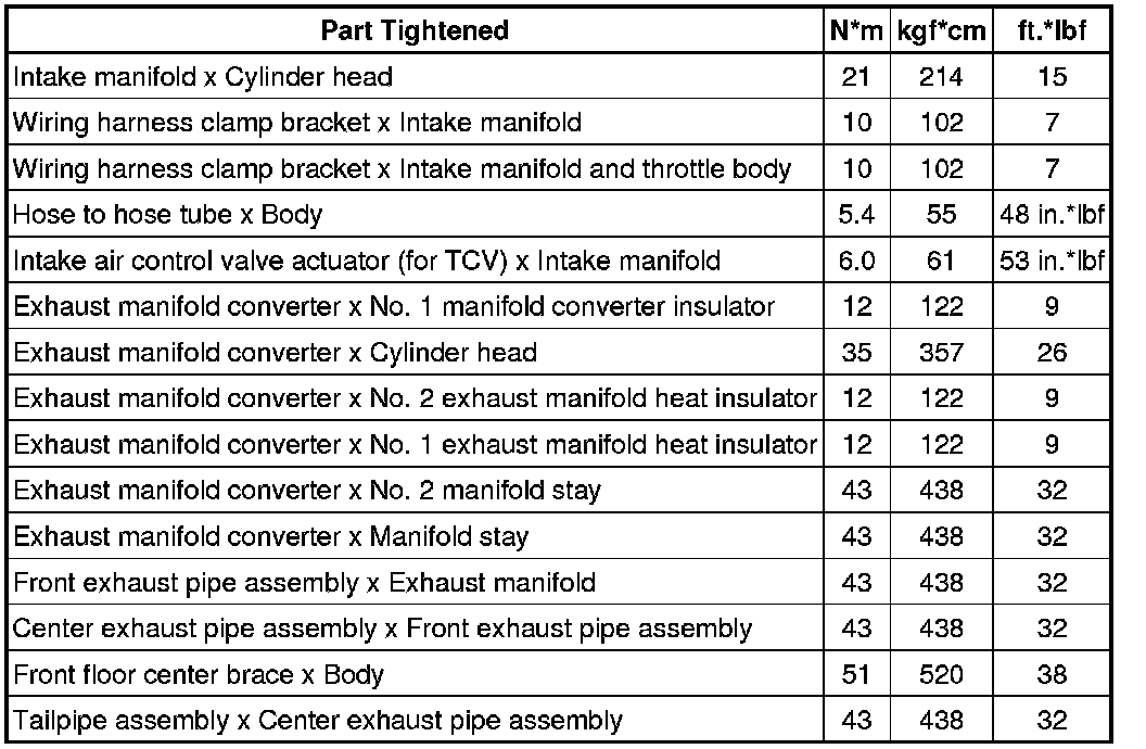 SPECIFICATIONS: 2AR-FE INTAKE / EXHAUST: TORQUE SPECIFICATIONS