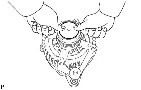 (a) While pushing the 2 brushes into the generator brush holder, insert a 1.0 mm (0.0394 in.) pin into the generator brush holder.