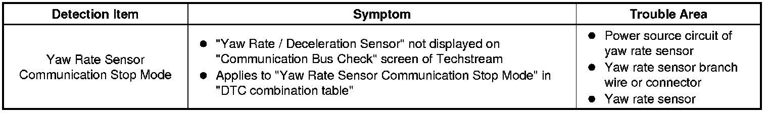 - Yaw Rate Sensor Communication Stop Mode