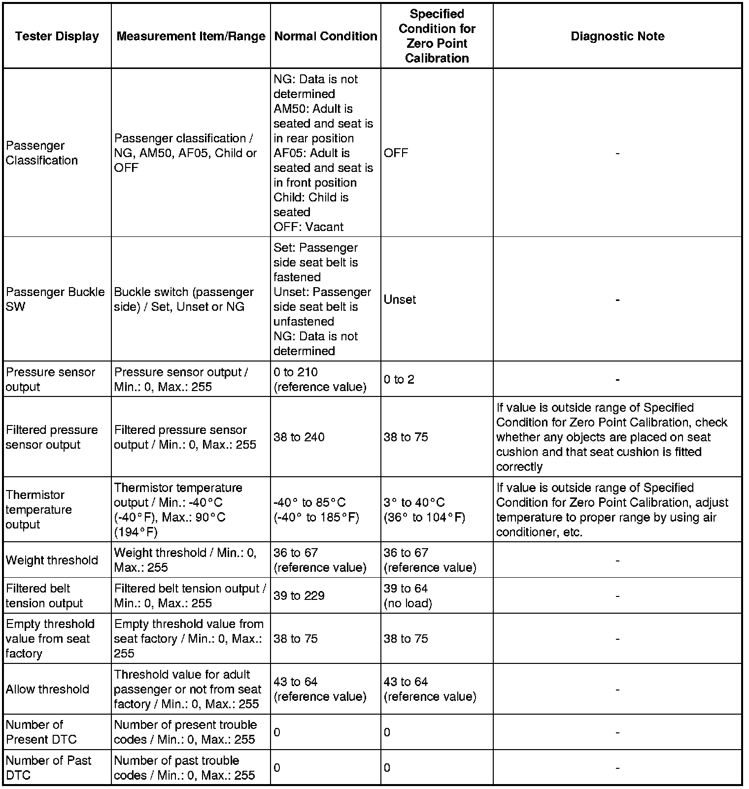 SUPPLEMENTAL RESTRAINT SYSTEM: OCCUPANT CLASSIFICATION SYSTEM: DATA LIST / ACTIVE TEST