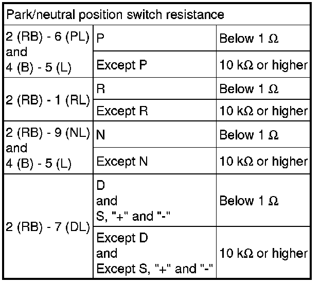 PARK / NEUTRAL POSITION SWITCH