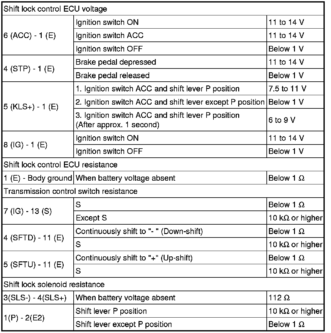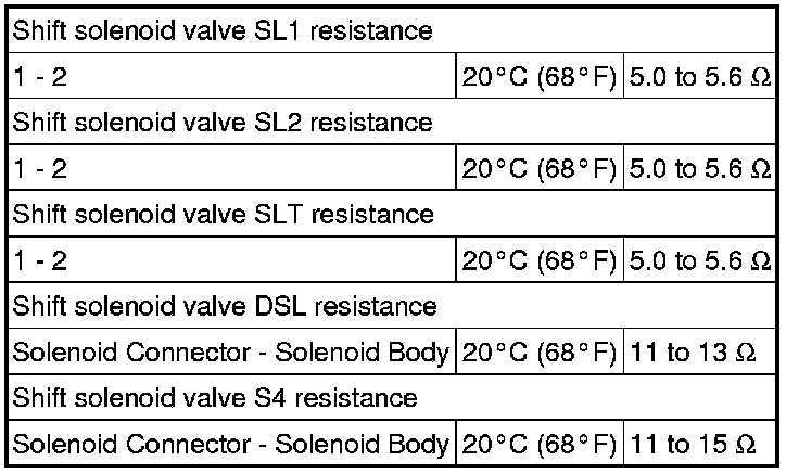 SERVICE SPECIFICATIONS: U241E AUTOMATIC TRANSAXLE: SERVICE DATA