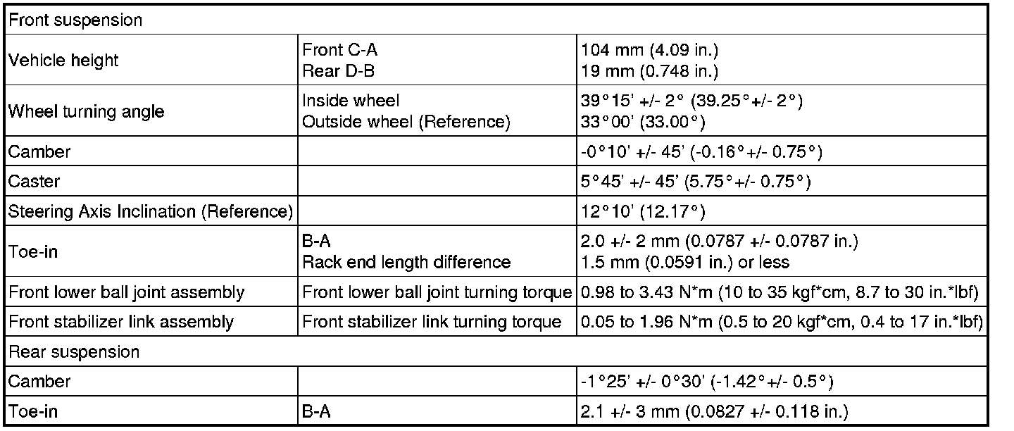 SERVICE SPECIFICATIONS: SUSPENSION: SERVICE DATA