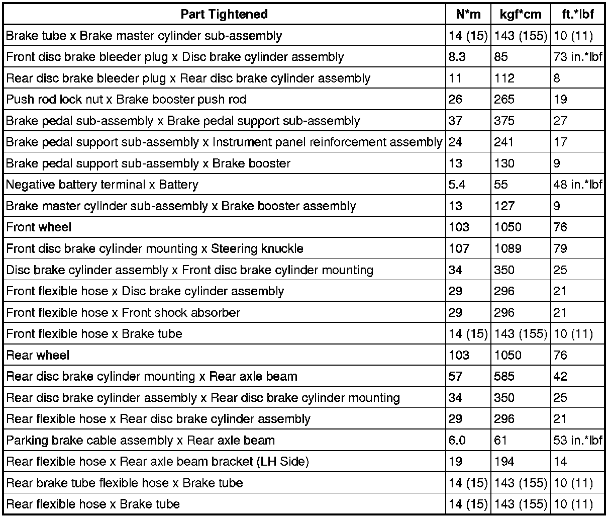 SERVICE SPECIFICATIONS: BRAKE: TORQUE SPECIFICATIONS