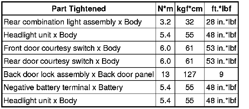 SERVICE SPECIFICATIONS: LIGHTING: TORQUE SPECIFICATIONS