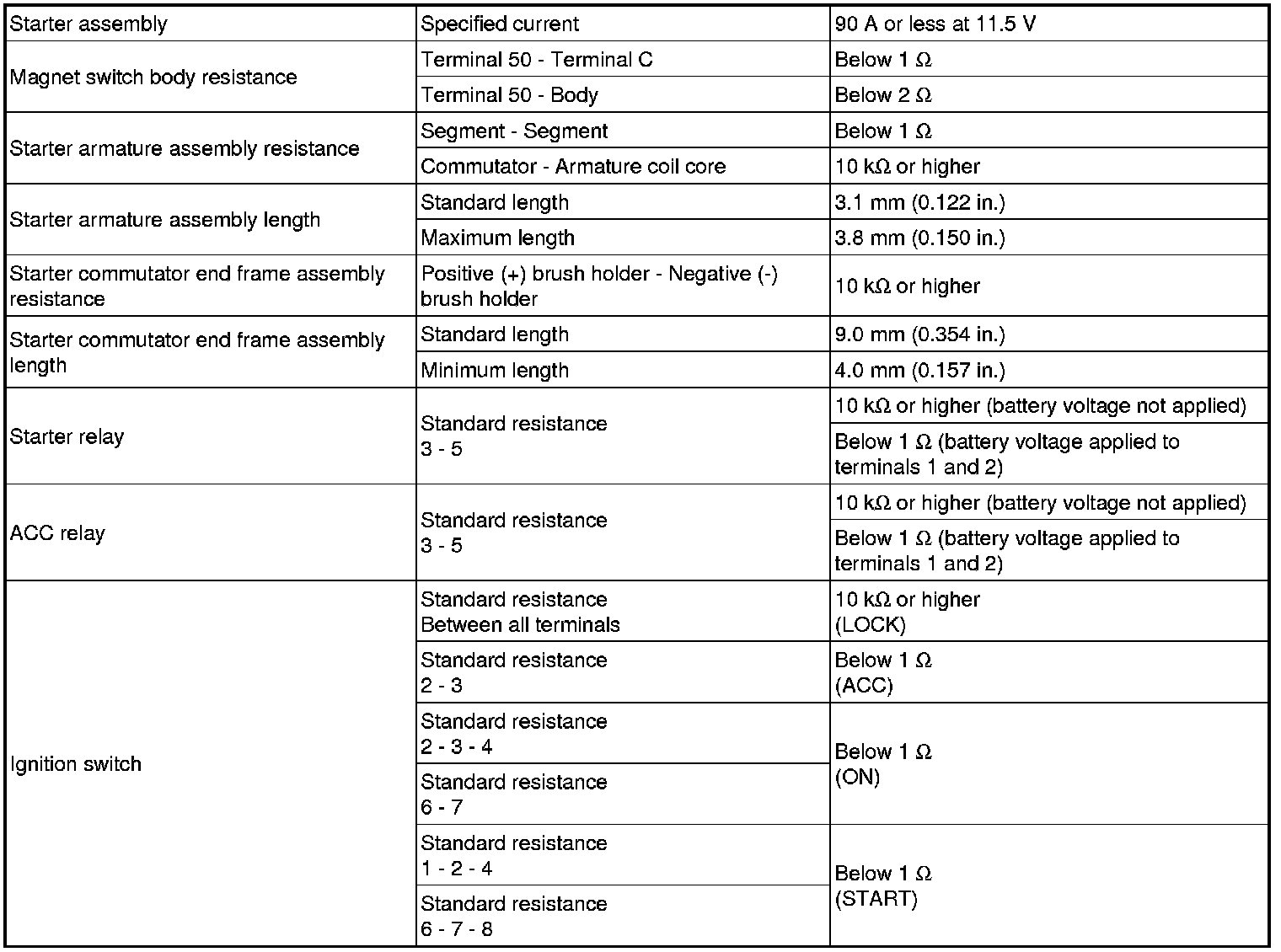 SERVICE SPECIFICATIONS: 2AZ-FE STARTING: SERVICE DATA