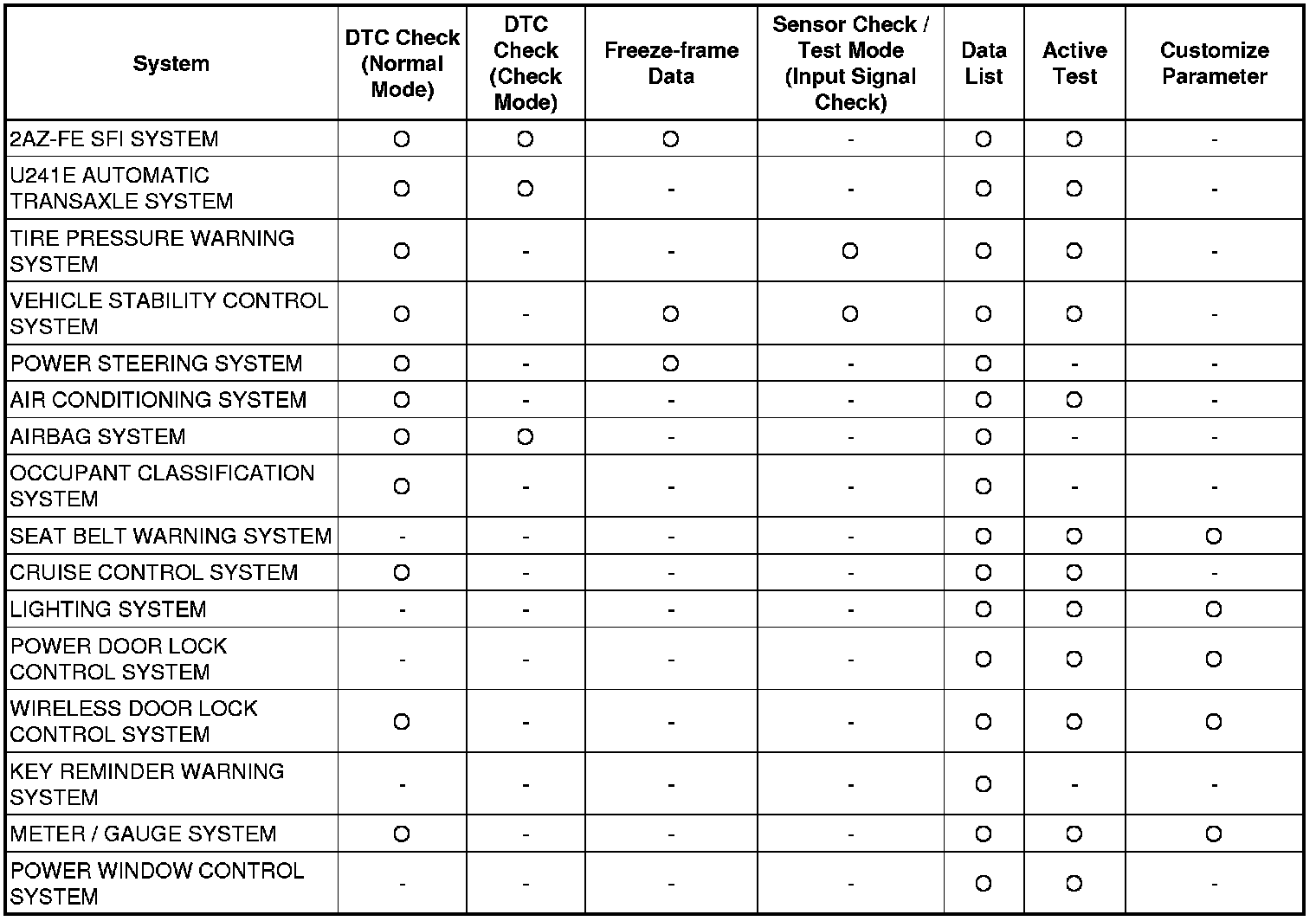 By using these functions, the problem areas can be narrowed down and troubleshooting is more effective. Diagnostic functions are incorporated in the following system in the SCION xB.