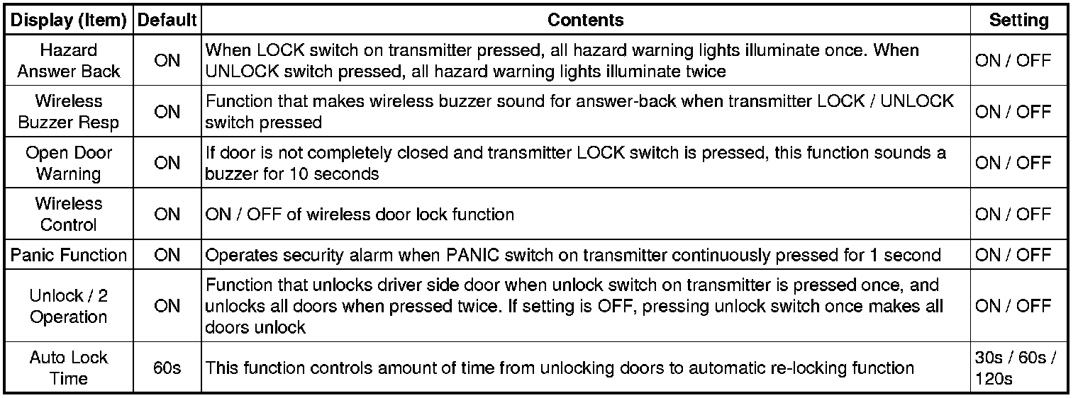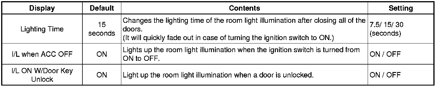 When the buzzer OFF setting is selected, the buzzer activation while the vehicle is being driven is cancelled. However, the buzzer activation when the ignition switch is turned to ON cannot be cancelled.